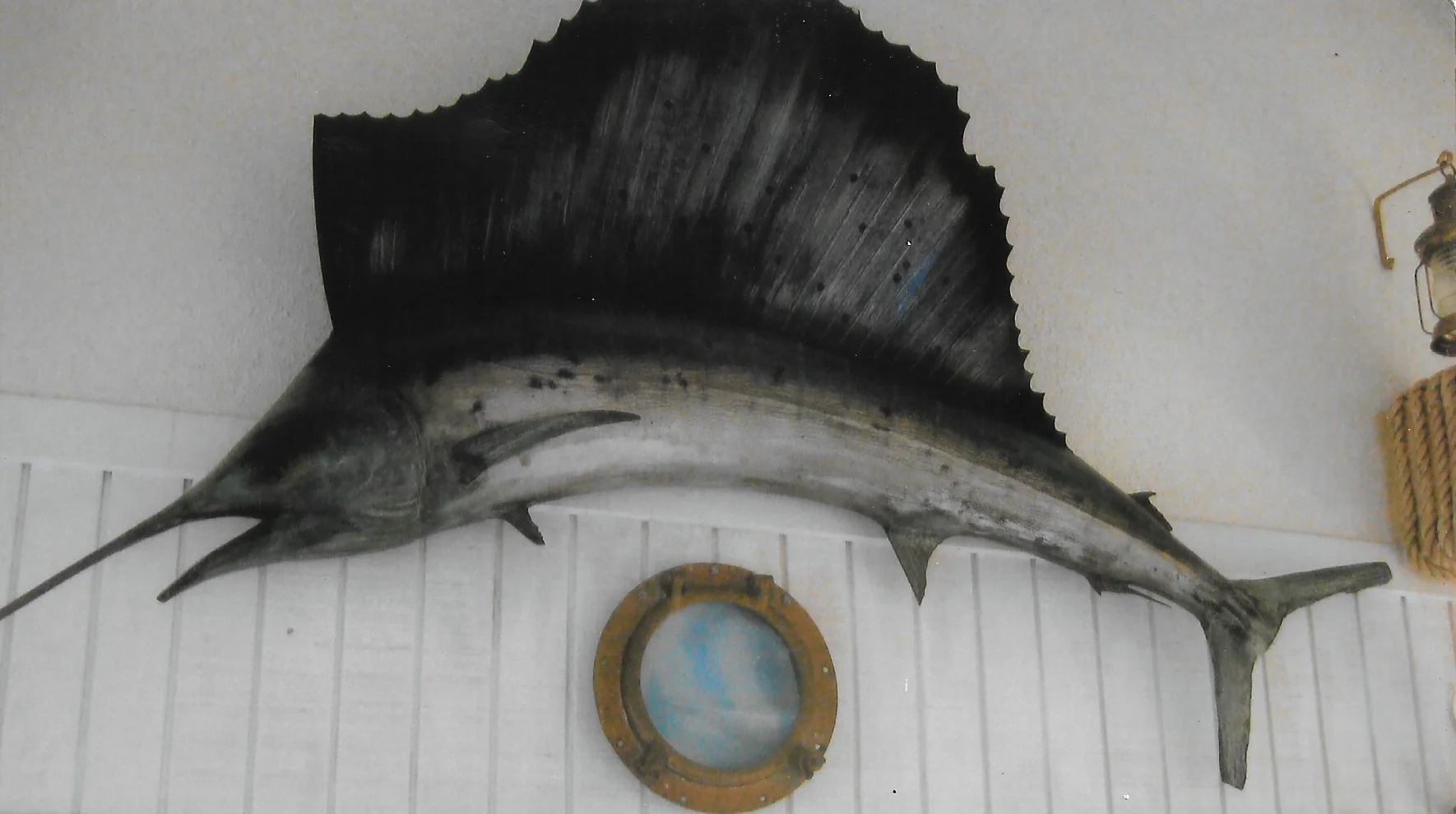 I've done several swordfish restorations over the years - this fish was missing the actual sword as well as several of the fins. I constructed a sword and fins, and added them to the swordfish. I then repainted the entire fish, blending the added pieces with the original.