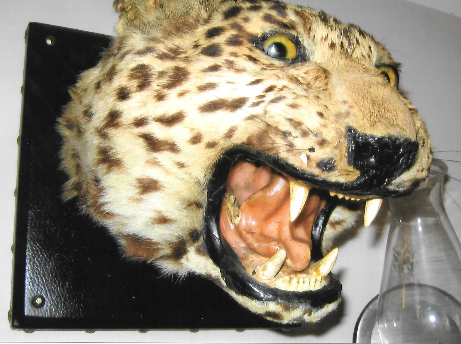 I was 14 years old and one day while I was riding my bicycle in downtown Hackensack, I found this in the trash on the curb. It was missing some teeth and a part of its tongue. I brought it back home and was so enamored by it that I just had to restore it back to its original likeness. Utilizing wax, plaster of paris and paints for the restoration.
